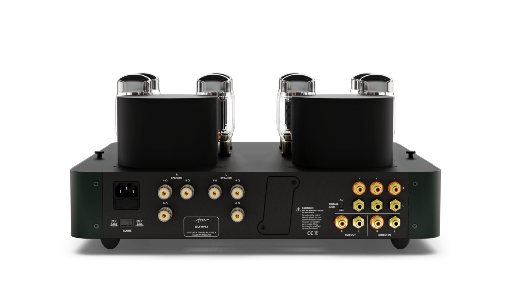 Olympia – dual mono, integrated vacuum tube amplifier. It is based on eight KT88 tubes which features a truly captivating sonic performance, characterized by its powerful and refined sound signature. The amplifier comes fully equipped with all available options. The new remote offers volume control, source selection , including on/off mode. The amplifier includes a convenient „standby” function and a 2-minute pre-heating cycle which ensure optimal operating conditions and extended tube lifespan. An optional equipment card slot extension opens new possibilities for future as a bluetooth, phono-stage or DAC. The newly designed electronic tube protection fuse replaces traditional glass fuses, enhancing reliability and protects the vacuum tube circuitry. New automatic bias adjustment system guarantees optimal performance and eliminates the need for any manual adjustments. The dual-mono design ensures exceptional stereo imaging and a deep, expansive soundstage, immersing the listener in every detail of the recording. It`s dynamic response and tonal accuracy bring music to life with warmth, clarity, and touch of a classic tube magic.Type:Olympia EvoTyp:vacuum tube dual mono integrated amplifierVacuum tubes:8x KT88 + 2x 12AX7 + 2x 12AU7Inputs:3x RCA + 1x DIRECTSuitable speaker impedance:4 Ω / 8 ΩNominal output power:2x 100 WTotal harmonic distortion (THD):<0,1% (below 100 W); <1% (at full power)Power bandwidth:16 Hz – 80 kHzDamping factor:>30Input impedance :50 kΩSensitivity:0,7 VPower consumption:350 W (at idle); 700 W (at full power)Weight:24 kgDimensions:420x380x200 mmEquipment:tube cage, remote, SUB OUT, DIRECTOptional Equipment:Bluetooth extension card -